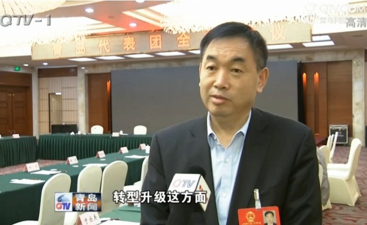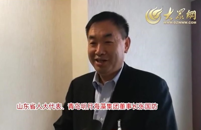 省十二屆人大六次會議在濟南閉幕,明月海藻集團董事長張國防接受采訪