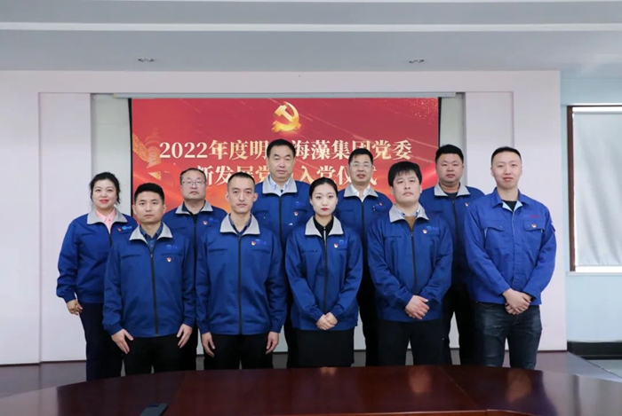 11月14日上午,青島明月海藻集團黨委舉行2022年度新發展黨員入黨儀式。集團黨委書記、董事局主席張國防,集團總裁劉兆志,黨委副書記逄錦龍,新發展黨員及各黨支部書記出席本次儀式,部分黨員和入黨積極分子代表列席。儀式由黨政辦公室總監楊曉菁主持。