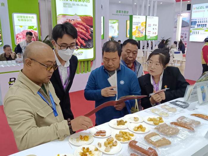 同時(shí),研發(fā)與營(yíng)銷工作人員熱情接待前來品嘗交流的行業(yè)客戶,詳細(xì)介紹海藻膳纖功能配料其應(yīng)用原理及賦能肉制品的各種可能。