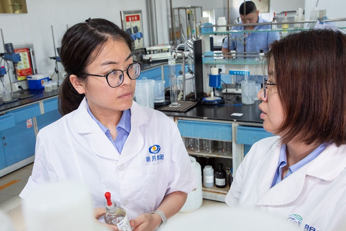 巾幗不讓須眉,勇攀科技高峰。趙麗麗博士負責海藻活性物質制備技術開發及裝備創新升級項目工作,她積極踐行集團“利用海洋資源,守護人類健康”的使命,致力于海藻活性物質的提取純化技術和分析檢測方法的研究創新,以及加工流程和產品的標準化體系建設,在海藻酸鹽的精深加工和產業化終端應用方面,緊跟行業需求,細分優化產品性能,降低運行成本,推動了明月海藻集團基礎產業生產過程智能化升級和海藻生物加工產業的高質量發展。