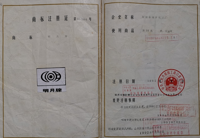 1998 年,膠南市委、市政府決定將黃海海藻工業(yè)集團公司改制組建新公司,當時身為總經理的張國防力主將其命名為——“明月” 。從而,使”明月“從一個品牌的冠名上升為一個企業(yè)的冠名,其中蘊含著醇厚的文化內涵和美好的發(fā)展愿景。