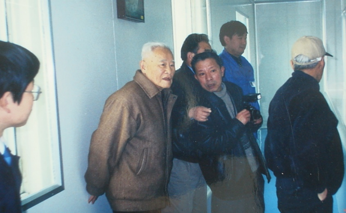 2000年3月23日,曾呈奎院士(左二)參觀公司生產車間