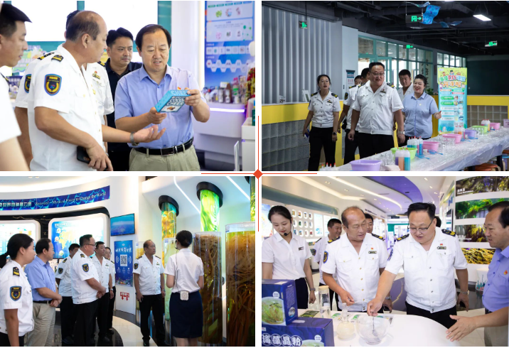 城運西海岸交通發展集團有限公司公交運營事業部副部長、西海岸溫馨巴士有限公司黨支部組織委員、工會主席任顯寶、城運西海岸交通發展集團有限公司公交運營事業部副部長、紀檢委員、安全總監李玉俊一行,在明月海藻集團黨委副書記、工會主席楊曉菁、健康科技黨支部書記劉振鋒、黨工群團中心主任封安波陪同下,參觀了中國海藻科技館、海藻部落、海藻健康舫,了解了明月海藻集團通過不斷提升海洋新質生產力,把一棵小海藻做成一個大健康產業的創新發展之路。