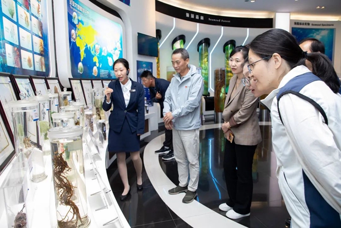 一行人首先參觀了中國海藻科技館,被明月海藻活性物質在多個領域的廣泛應用,以及集團在海洋生物技術領域的卓越創新成果深深吸引。這些前沿的科技展示讓他們對集團的新質生產力和顯著的發展成就給予了高度評價。
