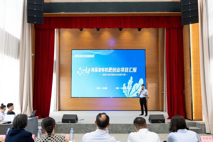 決賽現場氣氛熱烈,各參賽選手通過精彩的路演展示和嚴謹的答辯環節,展現了新區鄉村振興創業項目的創新活力和發展潛力。耿志剛以扎實的專業知識和飽滿的精神狀態,向評審專家詳細闡述了項目的技術創新點和應用前景,并系統介紹了海藻廢棄物資源化利用的技術路線、產業轉化方案以及市場推廣計劃,充分展現了明月海藻在海洋生物資源利用領域的技術實力和創新成果。